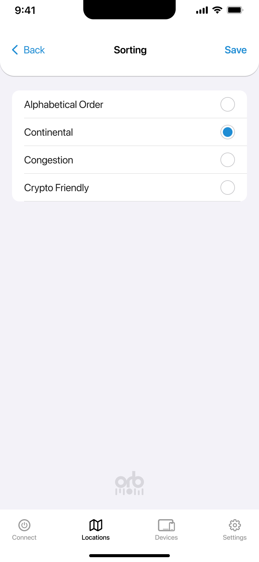 Organize servers by alphabet, continent, congestion, or crypto-friendliness.