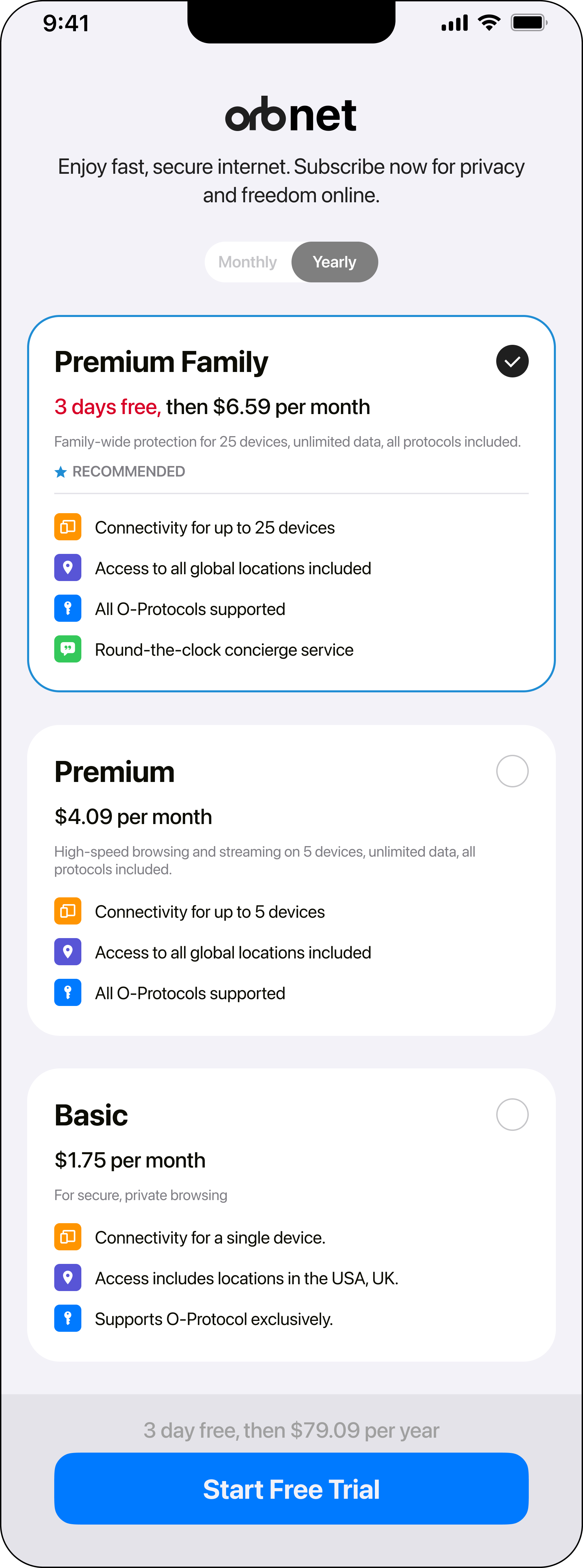 Start your free trial today and experience premium VPN protection. No commitment, cancel anytime.
